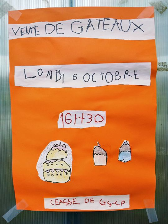 Rappel : vente de gâteaux des GS CP lundi 6 octobre à 16h30 🧁🍰🍪🍩