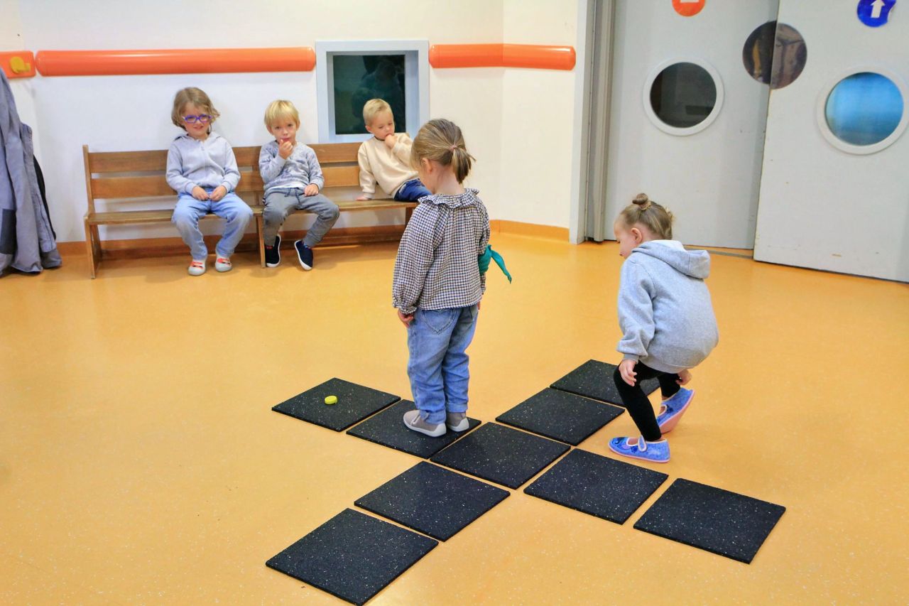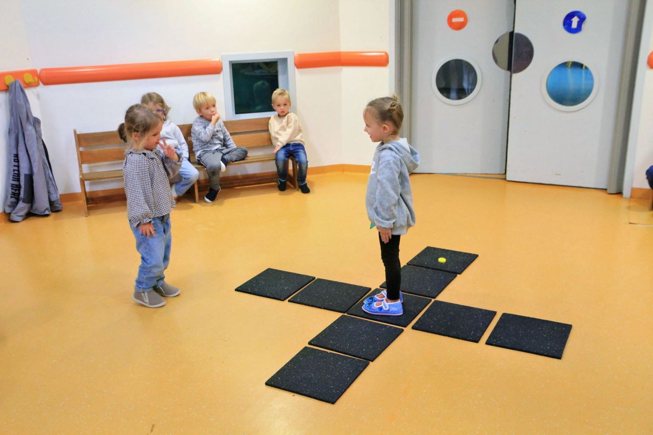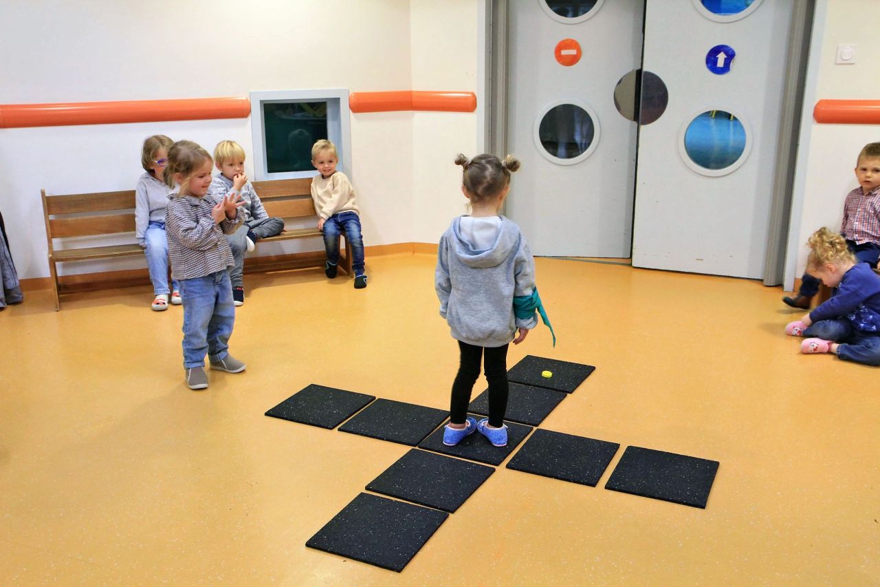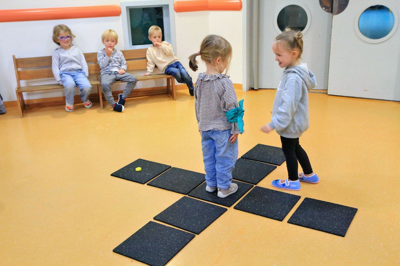 Pour les élèves de petite section, le quadrillage était simplifié. Dans un premier temps, les cases étaient alignées puis elles ont été placées en croix.