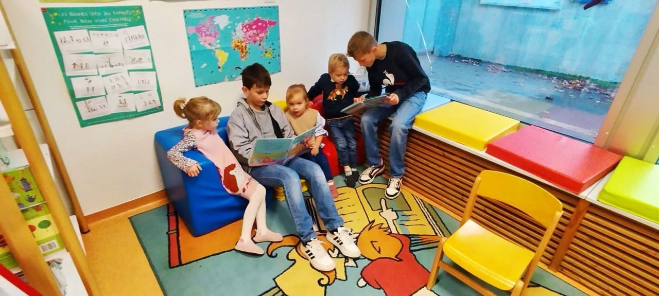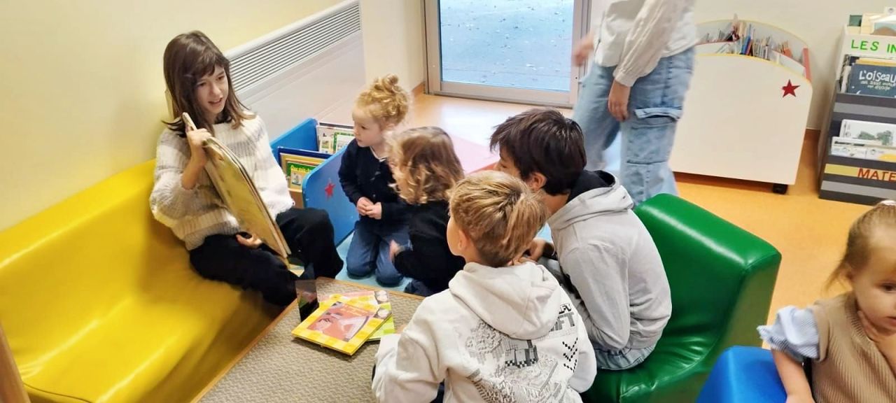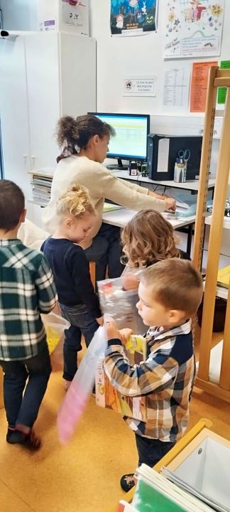 Vendredi matin, les élèves de PS-MS et de CM1-CM2 ont fait l'accueil du matin ensemble dans la bibliothèque de l'école. Les grands ont lu des livres aux maternelles pour le plus grand plaisir de tous !